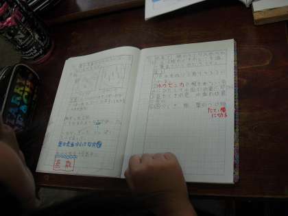 今日の理科のめあては「根からとり入れられた水は,根やくきのどこを通って,葉までいくのだろうか。」です。赤く着色した液を吸い上げたホウセンカの茎や葉を切り、水がどのように通っているのかを観察しました。
