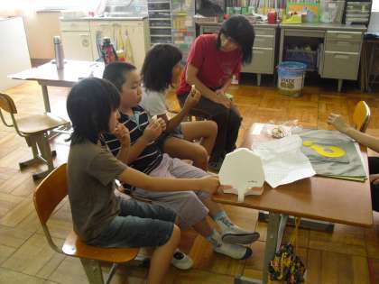 給食返却時,サービスホールでは3年生の児童が「みそ汁の食器に魚が・・・」と大発見を知らせに来てくれました。