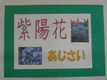 5年生の作品は「紫陽花をかこう」です。色とりどりの紫陽花と自作の詩をお楽しみください。