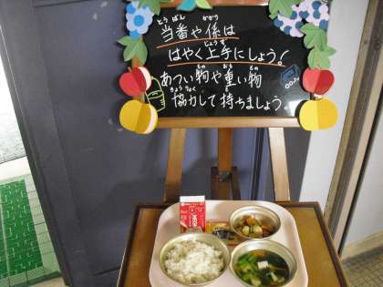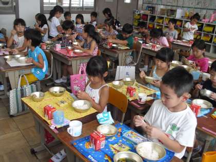 今日から給食再開、どんな様子で食べているのか、1年生の教室をのぞいてみました。