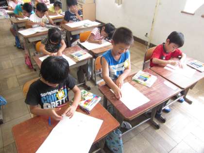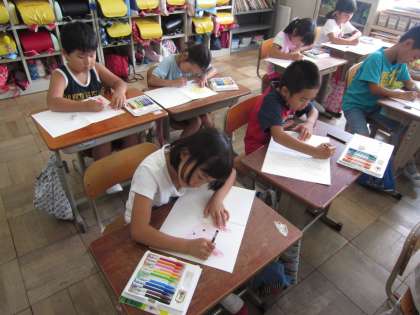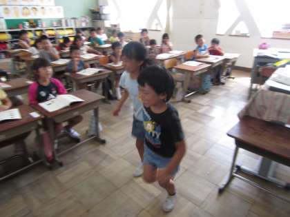 今日の国語は、「ゆうだち」に出てくる登場人物のペープサートを作りました。次の時間には、このペープサートを使って大変身!!の予定です・・・。