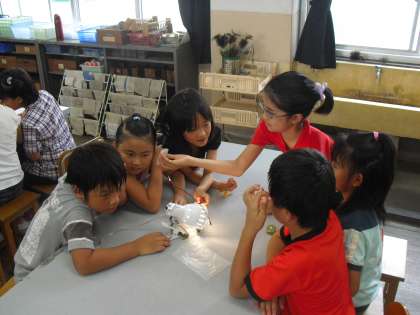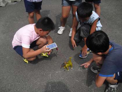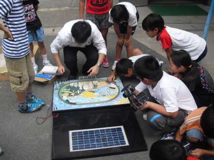 今日は、4年生対象の京セラ環境学習が理科室で行われました。地球温暖化についてのお話を聞いた後、太陽電池を使って、いろいろな実験をしました。
