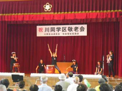 今日は川岡学区の敬老会がありました。川岡小学校の部活動からは金管バンドが演奏、3Bリズムクラブがダンスを、児童会からは児童代表の作文、そして教職員の和太鼓演奏が披露されました。