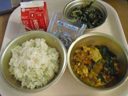 今日の給食は,麦ごはん・牛乳・とうふの四川風・ほうれん草ともやしのいためナムル・じゃこでした。連休明け,ぼんやりとした体を目覚めさせるようなピリカラの豆腐料理で,残菜もほとんどゼロでした。