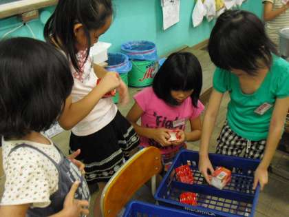 2年3組もおかずの残菜ゼロ。牛乳パックも指先に力を入れて,上手につめられていました。