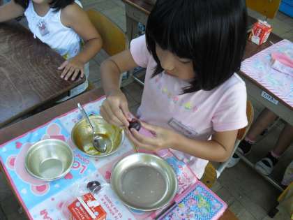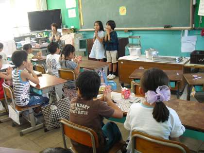 今が旬の甘みたっぷりジューシーな2粒のぶどうを,大切に大切に皮をむきながらたべていました。実りの秋,食べ物がおいしい季節をむかえました。毎日の給食,おたのしみに。