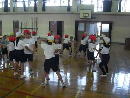 今日は体育館でダンスの練習をしました。踊りにも慣れ、曲にのりながら、みんな楽しく踊っています!!