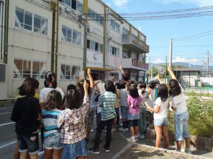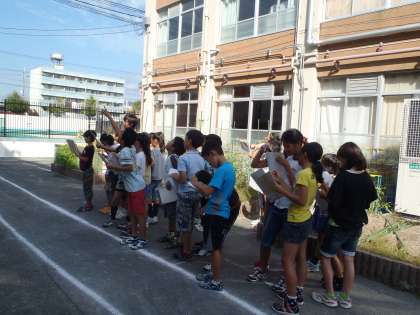 今日の理科は、月の動きについての学習です。月がどのように動くのか1時間ごとに観察しました。9時にはバッチリ見えていた月ですが、こんな日に限ってしだいに雲が・・・・・。