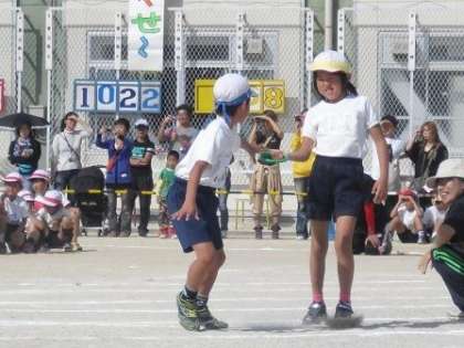 たんぽぽチームは、2年生のお友達に応援に来てもらい、がんばってバトンをつなぎました。