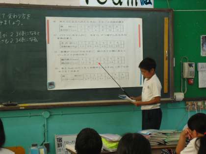 今日の算数は比例と反比例の学習です。いろいろな変化の様子を見て,伴って変わる2つの量の関係を調べていきました。