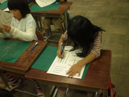 みんな,紙を上手に回しながら,悪戦苦闘。