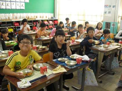 給食室で一つ一つ手作りした春巻は,中の具はしっとり,外の皮はカリッと香ばしく揚がっていました。子どもたちは,ひと口ひと口大事そうに食べていましたよ。