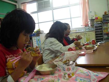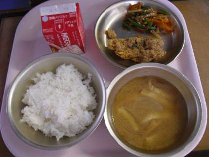 カリカリ、サクサクとした衣がとても香ばしく魚の苦手な児童もしっかり食べていました。鯖も野菜も、みそしるも残菜ゼロ、みんなでおいしくいただきました。