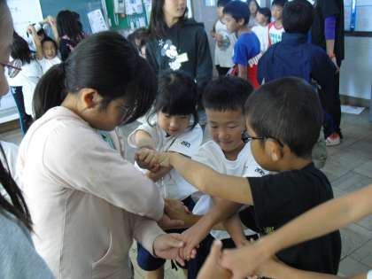 今日はたてわりあそびがありました。初めての校内ラリーです。みんなで仲よく協力しながら、課題に挑戦しました!!