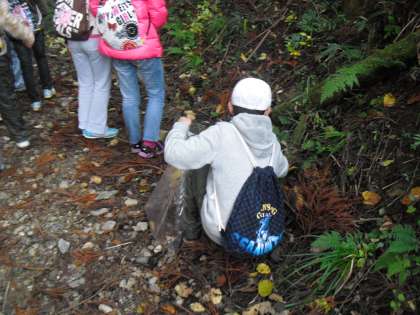 明日の活動「森のレストラン」にむけて、材料集めに行きました。残念ながら、ぽつぽつと雨が降り始めてきました。