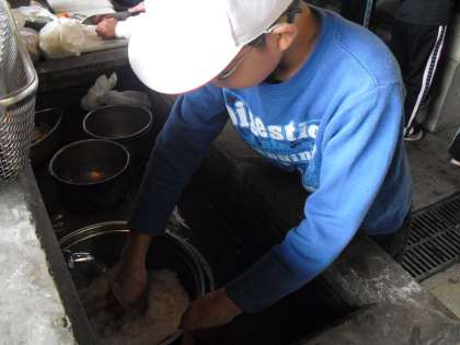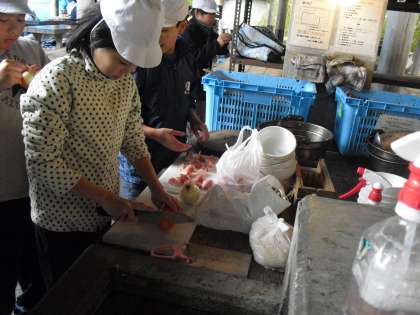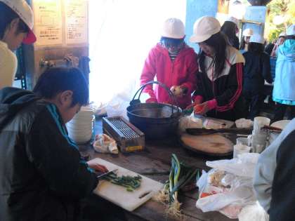 森のレストランの材料集めの次は、野外炊事です。今日のメニューは「すき焼き風煮」