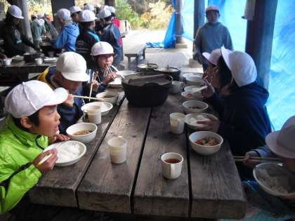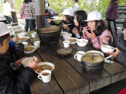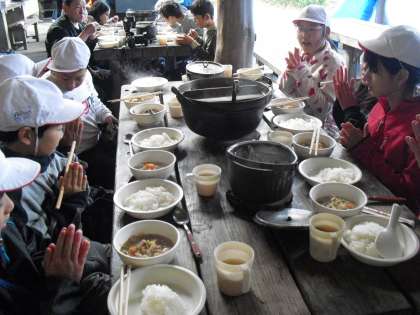 野外炊事その6 熱々のうちに、いただきます!!