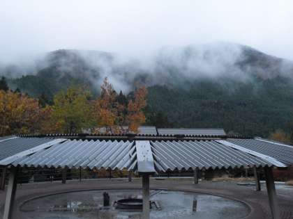 冷える朝。きのう,みんなが集った営火場もひんやりしています。でも,霧が薄れると晴れ!最終日の活動が存分にできそうです。