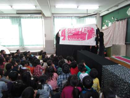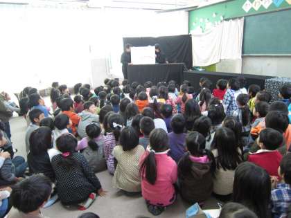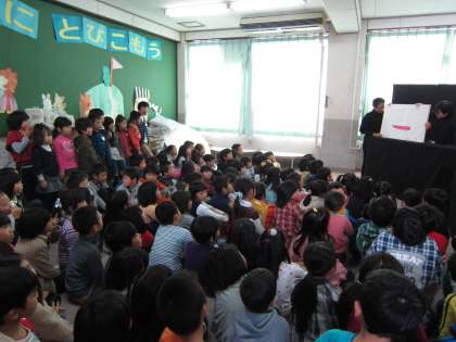 今日は、毎月子どもたちが楽しみにしている図書ボランティアのみなさんによる読み聞かせの会がありました。今日のお話は「おおきな おおきな おいも」です。大きな仕掛け絵本にみんなびっくり!!子どもたちは大喜びでした!!