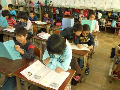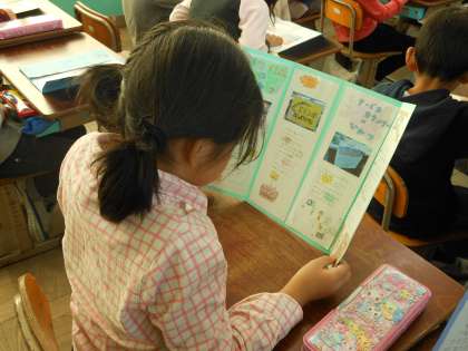 「スーパーmandai」を見学をて見つけたお店の工夫や秘密をパンフレットにしました。みんなで完成したパンフレットを見せあい、互いに気付いたことを交流し合いました。
