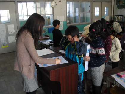 楽しかった冬休みも終わり、今日からまた、学校が始まりました。3年生は、12月までに学習した内容の復習をしました。一生懸命 間違えた問題を直した子どもたちは、先生に丸をつけてもらいたくて、ウキウキしながら長い列を作っています。無事に丸をもらえたかな?