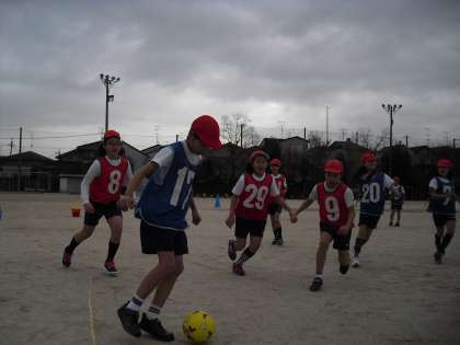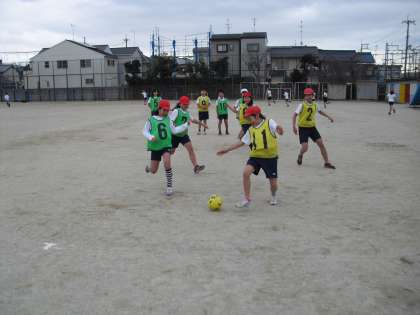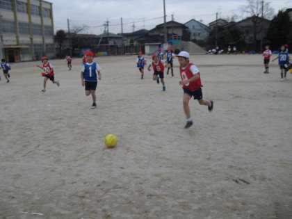 4年生の体育は、サッカーです。寒さに負けず、みんな一生懸命ボールを追いかけて、ゴールを目ざしています!がんばれ〜!!