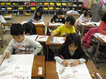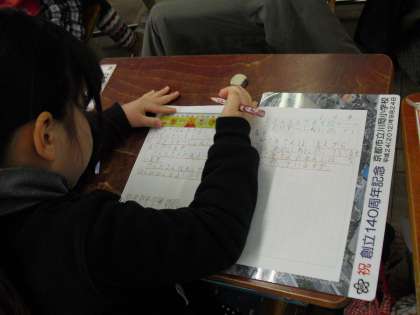 今日の算数は、何番目かを考えて、問題を解くていきました。ノートに図をかきながら、順序よくかぞえて正解を見つけていきます。しっかり書きながら、できたかな?