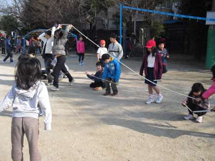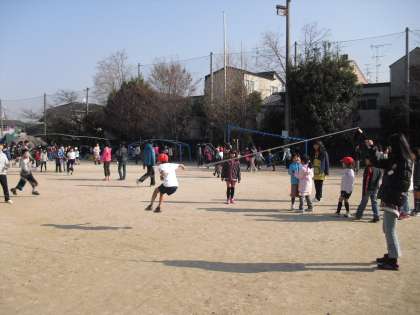 今日は中間休みにたてわりあそびがありました。寒い中、今日も元気に子どもたちは遊んでいます。全校生徒が集まれば、たくさんの遊びが始ります。子どもたちの遊びの力にかかれば、縄跳びだけでいろんな遊びができるようになります!