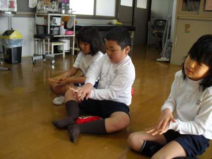 かぜの予防について、「しっかり手洗い」を練習しました。