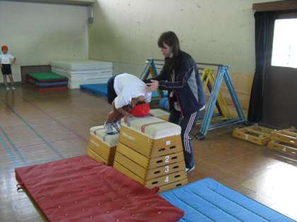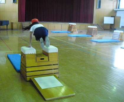 3年生は跳び箱運動で、いろいろな技に挑戦しています。今日は、多くの子どもたちが台上前転とかかえこみ跳びの練習をしました。困難さをやわらげるいろいろな場を使って、上手にできるようになるといいですね。がんばってね。