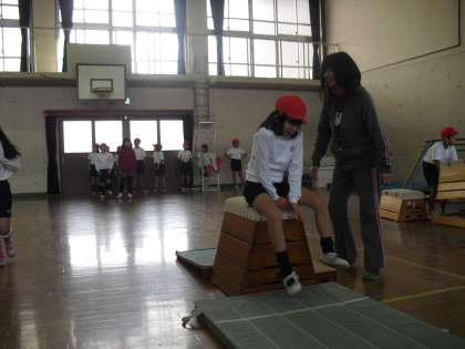 たんぽぽ学級のみんなも、3年生と一緒に跳び箱運動を楽しみました。みんな一生懸命開脚とびに挑戦です!うまく跳べるかな?