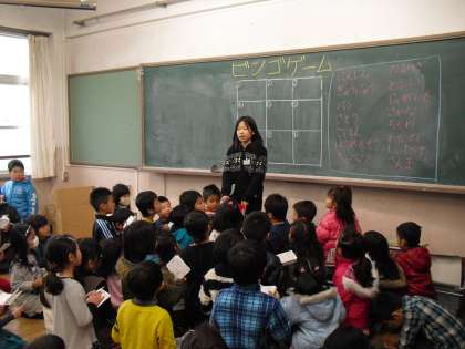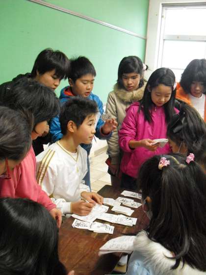 児童会室では、決められた15個の食べ物から前もって自分で9個選び挑むビンゴゲーム。始まって早々、ビンゴする子どももたくさんいました!ビンゴした人には、給食委員さんが作った素敵なカードがもらえるそうですよ。