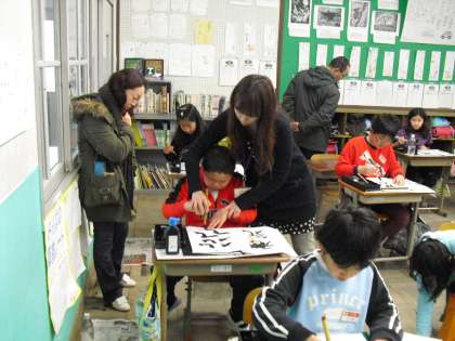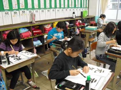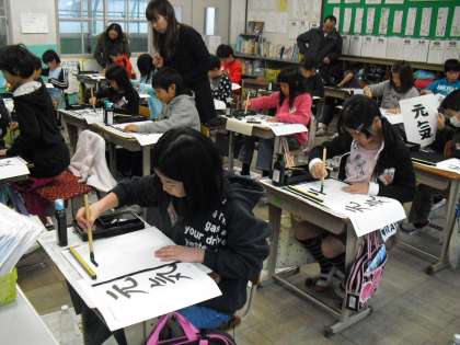 今日の書写は、これまで学習してきたことをいかして「元気」という字を書きます。姿勢をよくして、一筆一筆をていねいに書いていきました。