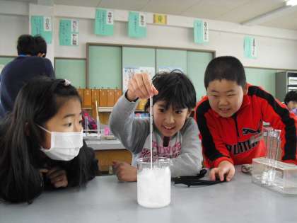 理科の時間に、水を冷やし続けたときの水の様子と温度や体積の変化を調べました。水と氷と食塩を入れて、実験開始!たっぷりと入れた氷と塩のおかげで、試験管の水はばっちり氷って、実験大成功!!めでたしめでたし。温度や体積の変化もしっかりとおぼえておきましょうね!