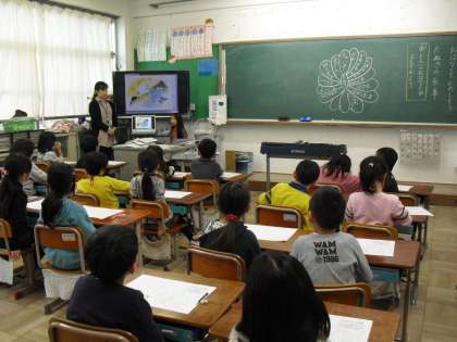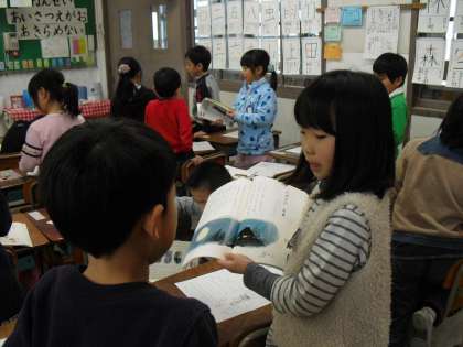 今日は「たぬきの糸車」です。先生の読み聞かせを聞いて「たぬきの糸車」のお話を知りました。読み聞かせを聞いた後は、自分が好きな場面を話し合いました。これから、どんな学習をするのか楽しみですね。