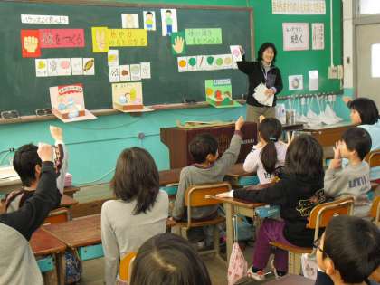 食の学習・ランチルーム給食は,3年2組。「バランスよく食べよう」では,生まれてから9年間,そしてこれから先も,私たちの体は食べた物によって作られ,健康で元気に毎日を過ごすためには,バランスがとれた食事が大切であることを学びました。食べ物の三色分類を知った後,食べ物カードを使って「パックンポイ」というゲームをしました。