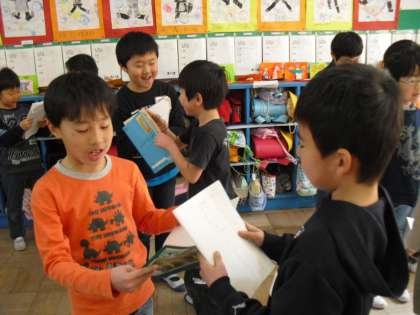 今日は「おにごっこ」を読んで、初めて知ったこと、知っていたこと、驚いたことなどを友達と話し合いました。ただ、友達に話すのではなく、聞こえる声で、「です。」といったていねいな話し方を気をつけて話し合いました。