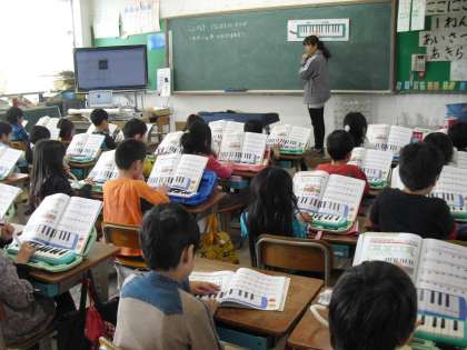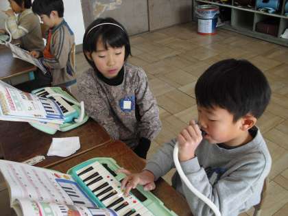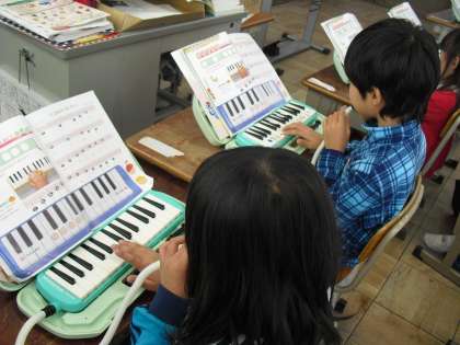2月14日(木) 1年 音楽「こんにちは けんばんハーモニカ」