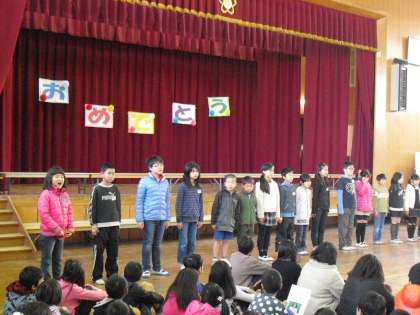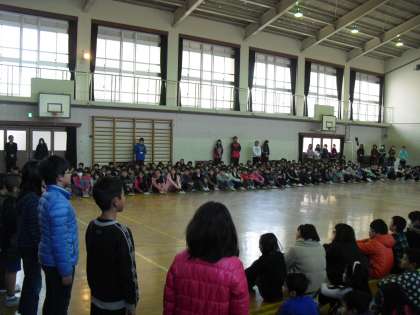 代表委員の人たちが、はじめの言葉を言ってくれました。これから6年生を送る会が始まります。