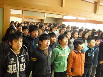 卒業生へのはなむけに選び抜かれたハートウォーミングな3つのお話。じんと心に響く読み聞かせの会でした。ボランティアのみなさん,ありがとうございました。6年生からのお礼は「涙を越えて」の合唱です!