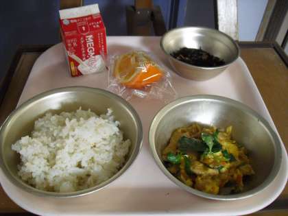 今日の献立は、麦ごはん、あげたま煮、ひじきとれんこんのいため煮、いよかん、牛乳でした。