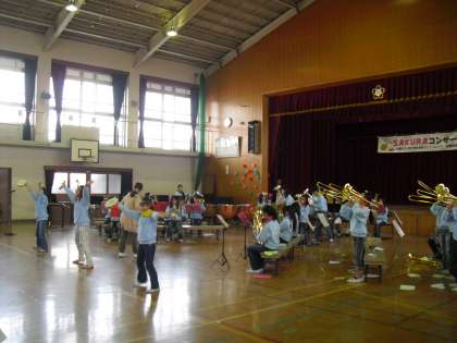 9日(土)に、金管バンドの「さくらコンサート」がひらかれました。1年間、部活動の時間にがんばって練習してきた曲を披露しました。