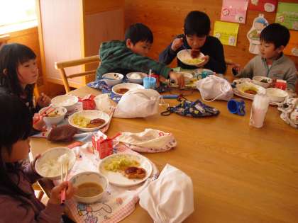 食の学習・ランチルーム給食は1年3組。毎日ペロリ賞のクラスだけあって,ランチルームでの給食を満喫していました。