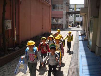 1年生は19日(金)まで、先生と一緒に下校します。ランドセルカバーに覆われたピカピカのランドセルを背負って、なかよく手をつなぎながら帰ります。みんな、気をつけて帰ろうね!
