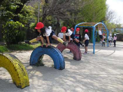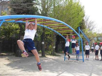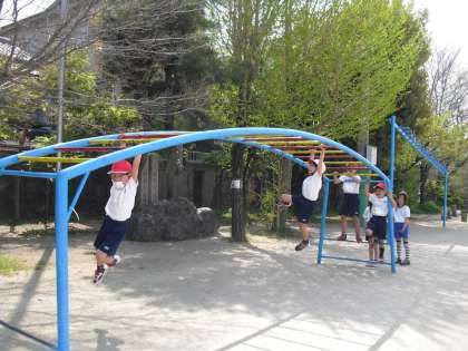うんていでも同様に、親指をしっかり回して握ることを注意しながら遊びました。
