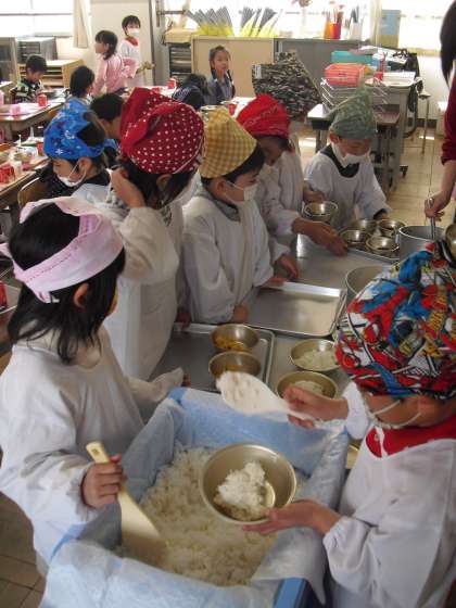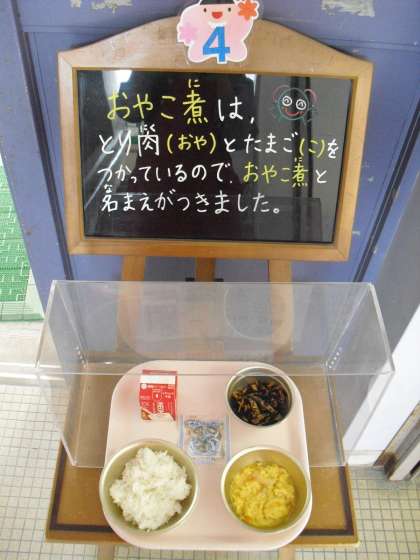 教室で「おやこ煮」のふたを開けると,たまごとだしのいい香りが