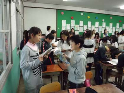 6年生は外国語活動の授業です。今日は誕生日をたずねたり、答えたりしながら楽しく学習を進めました。