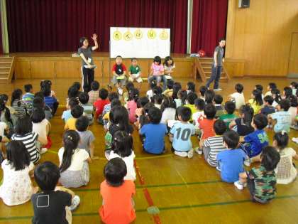 三時間目は,一年生とたんぽぽ学級の「なかよくなろう会」が開かれました。