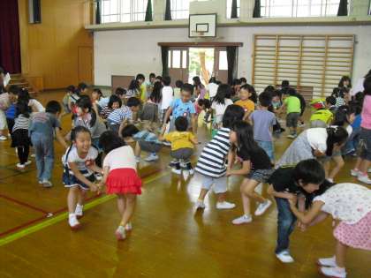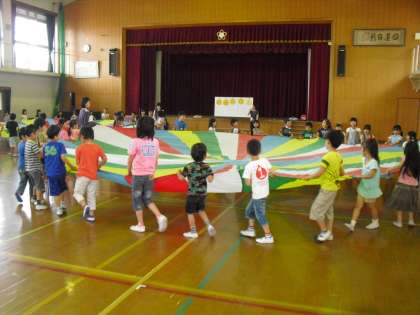 学級紹介から始まり,「まじょのタンゴ」に合わせてダンスしたり,バルーンを使ったりと,楽しい活動が続きます。