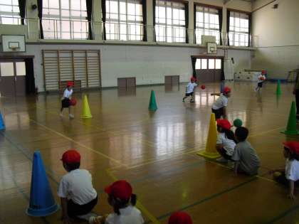 パスは皆得意げですが,ボールを弾ませるのがなかなか難しいようです。